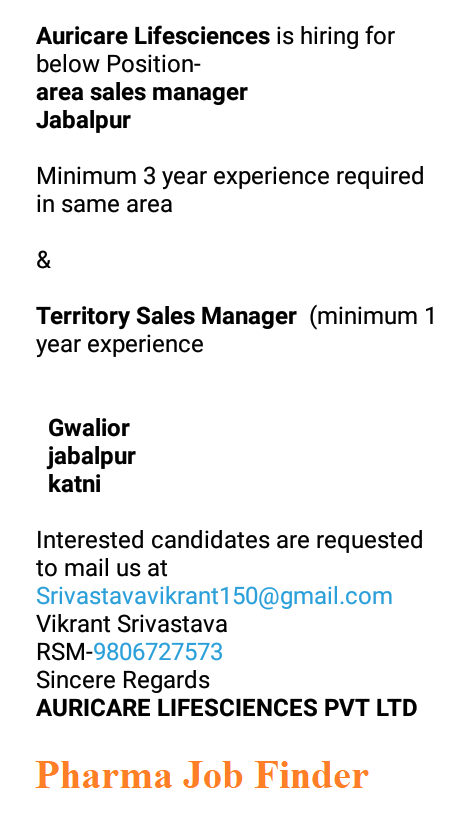 Auricare Lifesciences - Hiring for Medical Representative and Area Sales Manager