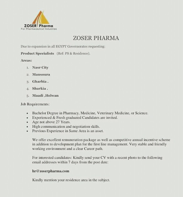 Zoser Pharma Urgently Opening For Medical Repersentative